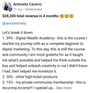 Right now I am focusing on sharing this beautiful, information packed, and easy to use product called Digital Wealth Academy. This product is incredible. It offers basically a business in a box. It gives you step by step guidance on how to bring your voice to the world by creating digital products of your own. As you are creating you own products, you can also make money by reselling this course and make 100% profit with Master Resell Rights. One sale of this course pays for this investment in yourself. Don’ miss this opportunity to create financial Freedom with this life changing course. CLICK HERE TO LEARN MORE